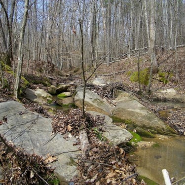 Huge 4.34 ace creek-front lot extending over 1000 feet deep! Absolutely beautiful mature pine woodlands filtering into tall hardwoods! This tract has several nice building sites and huge boulders at the creek!